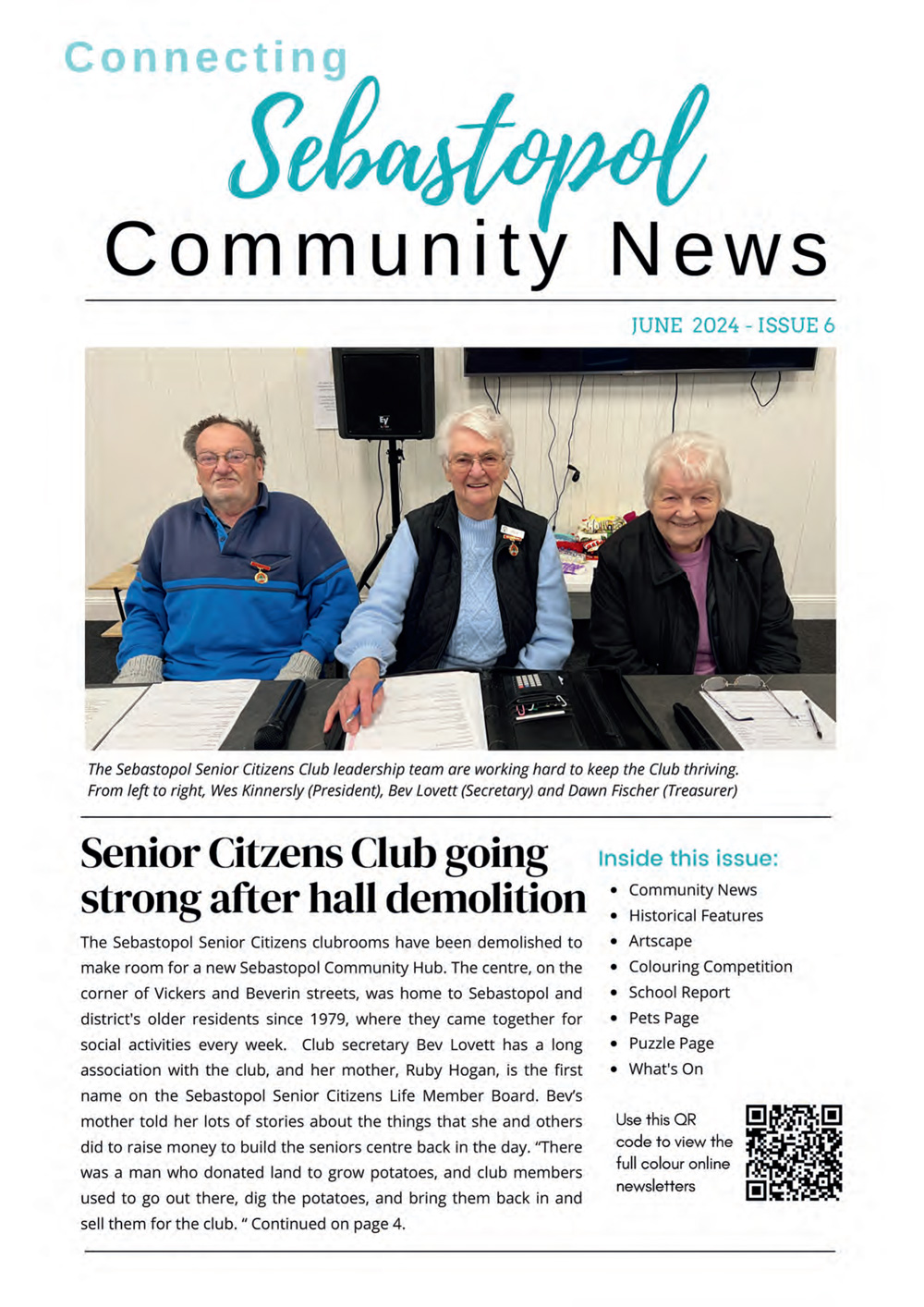 The newsletter is published quartely in March, June, September and December and is delivered by volunteers to over 4000 Sebastopol households, businesses and community organisations.